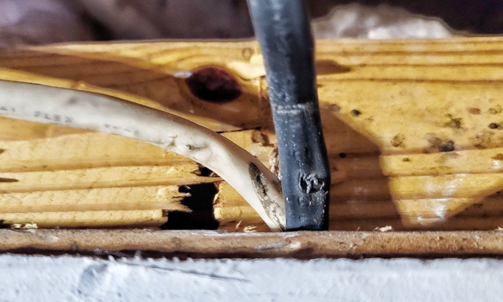 When installing fasteners, whenever possible, take a quick peek as to what the space is BEHIND the area that you are installing the nail or screw. Hundreds of dollars could have been saved if this had been employed during this repair, versus an assumption of “it’s a 2 x 4, I should be fine.”